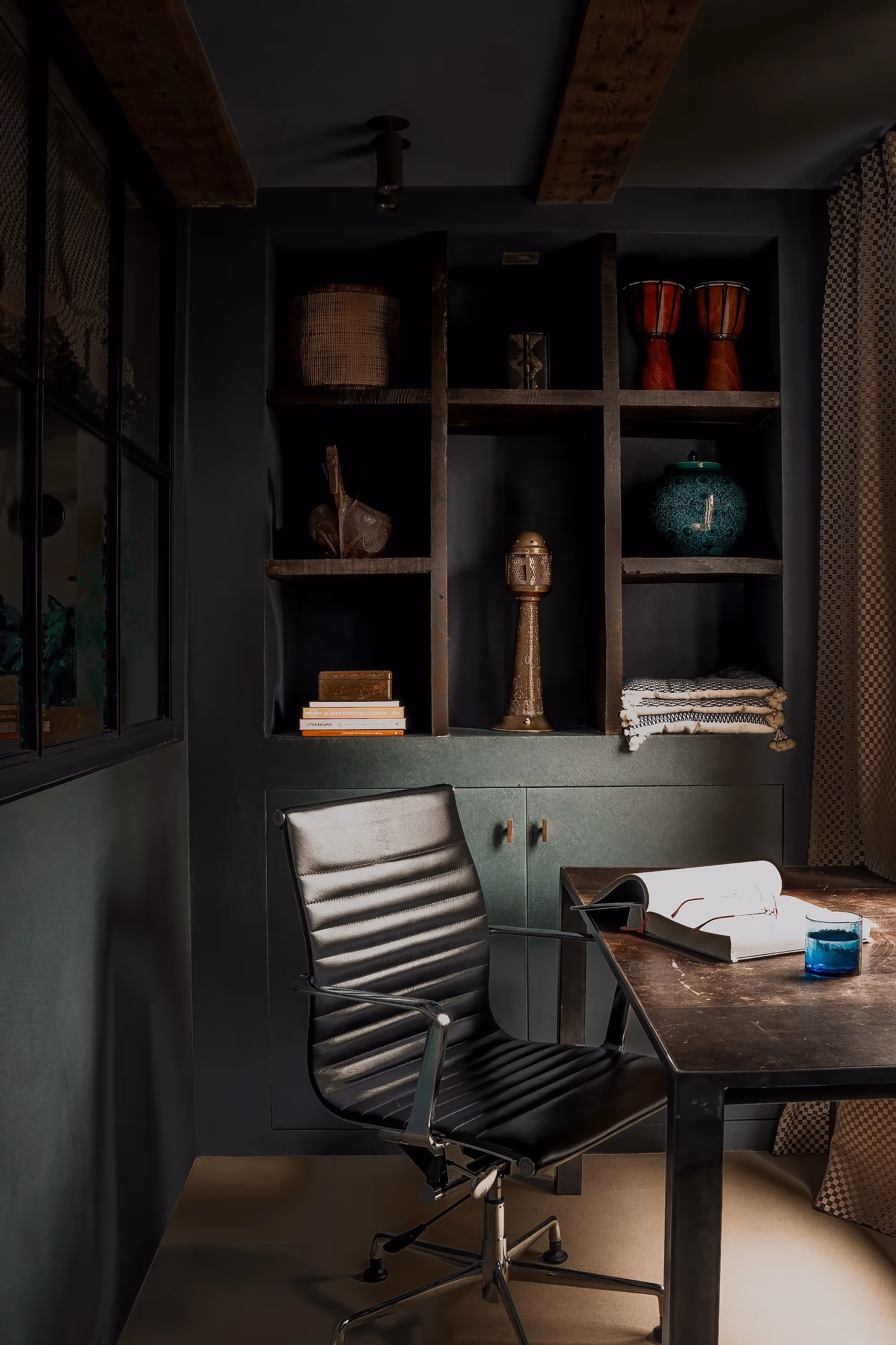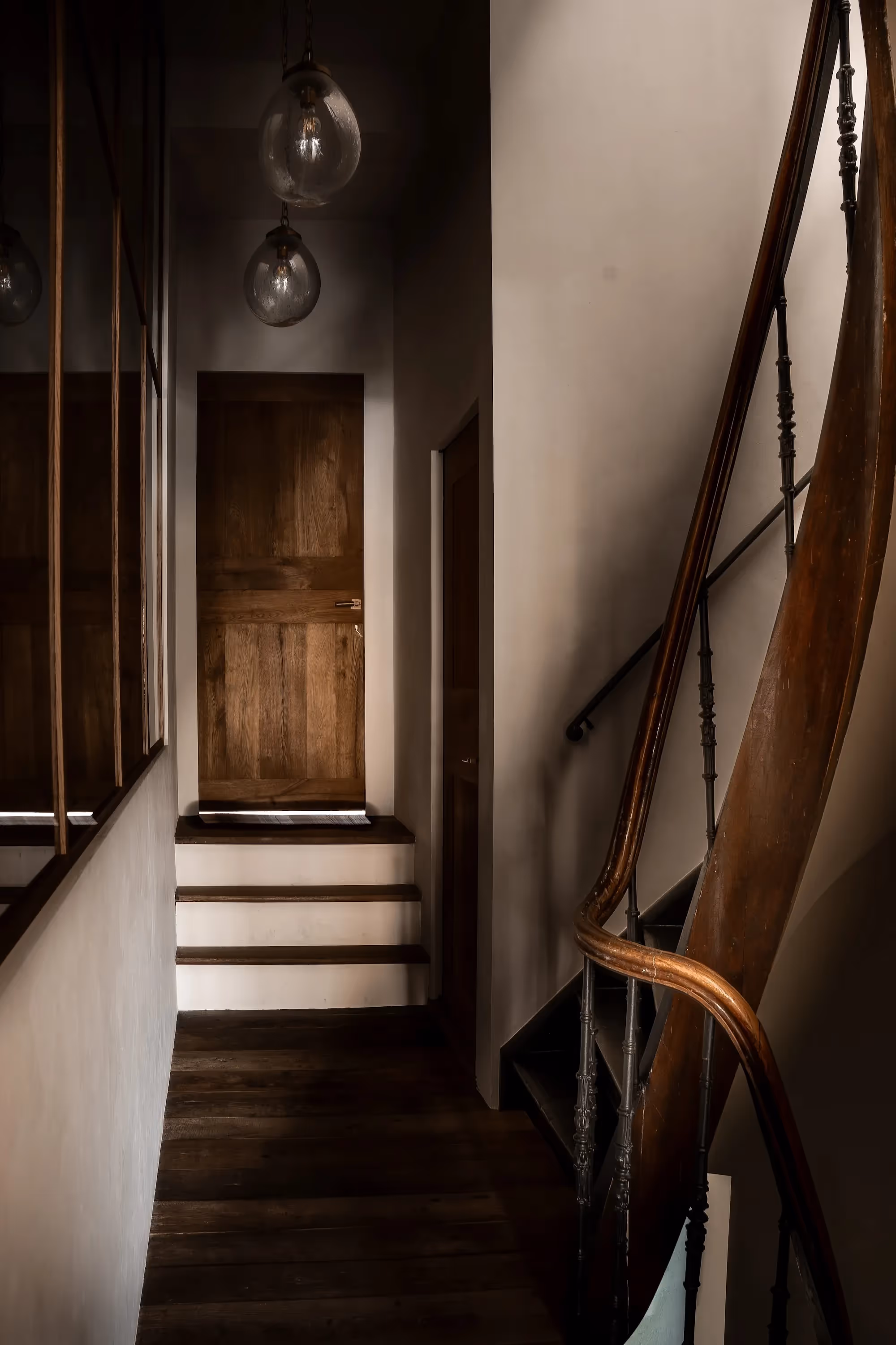 RA Studio’s vision was to modernise the space without losing its warm, lived-in feeling. With reclaimed materials like exposed brick and extended dark tones, this home feels both adventurous and welcoming, where the past flows into the present. Long corridors and a clever bar extension into the garden make the space feel open, yet intimate, perfect for a growing family who loves their city.