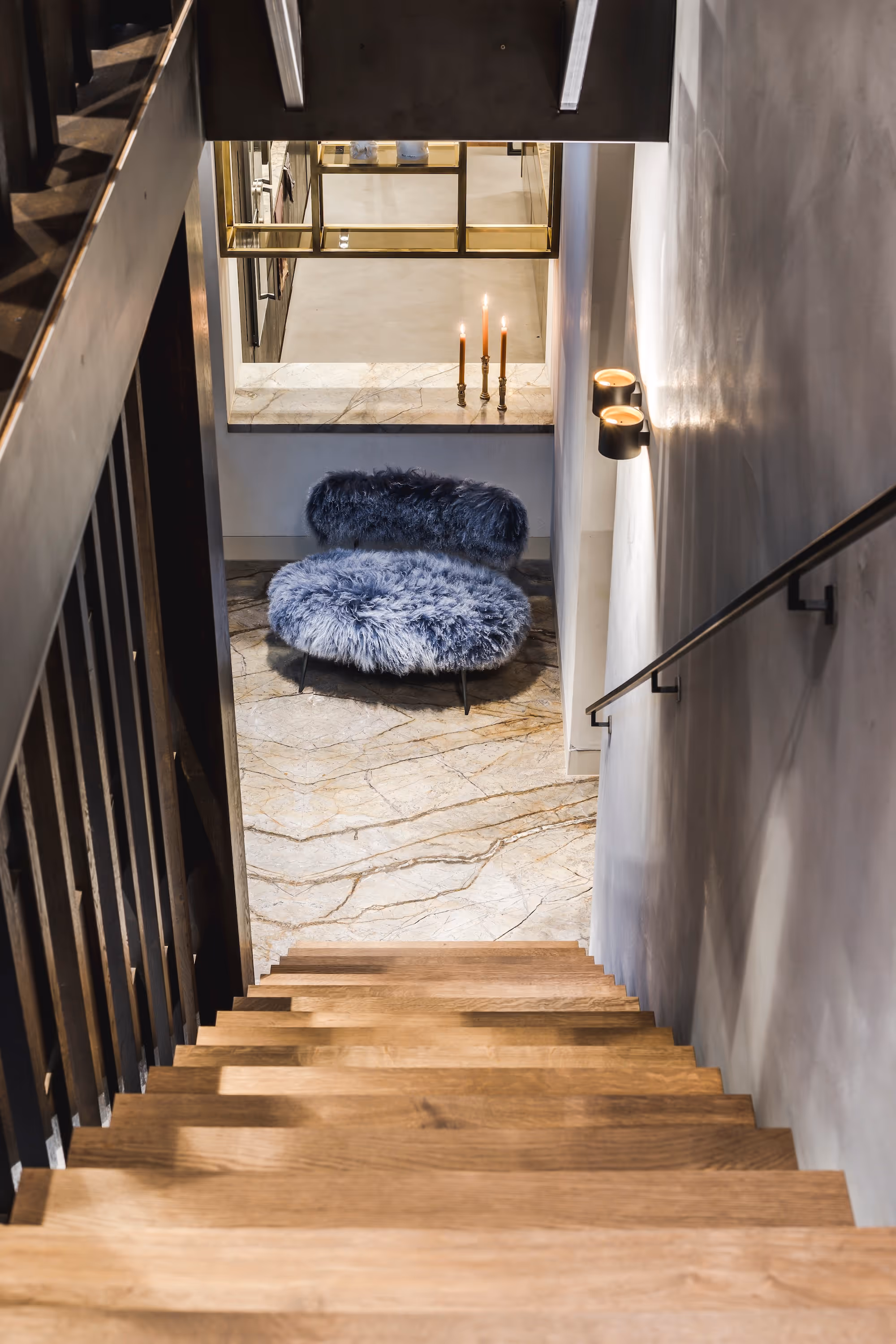 The warm woods and pops of colour bring cosiness to the sleek modernity, while details like a copper-bronze roof tie the house back to the earth. It’s modern living that feels deeply rooted in nature, where every detail invites warmth and comfort.