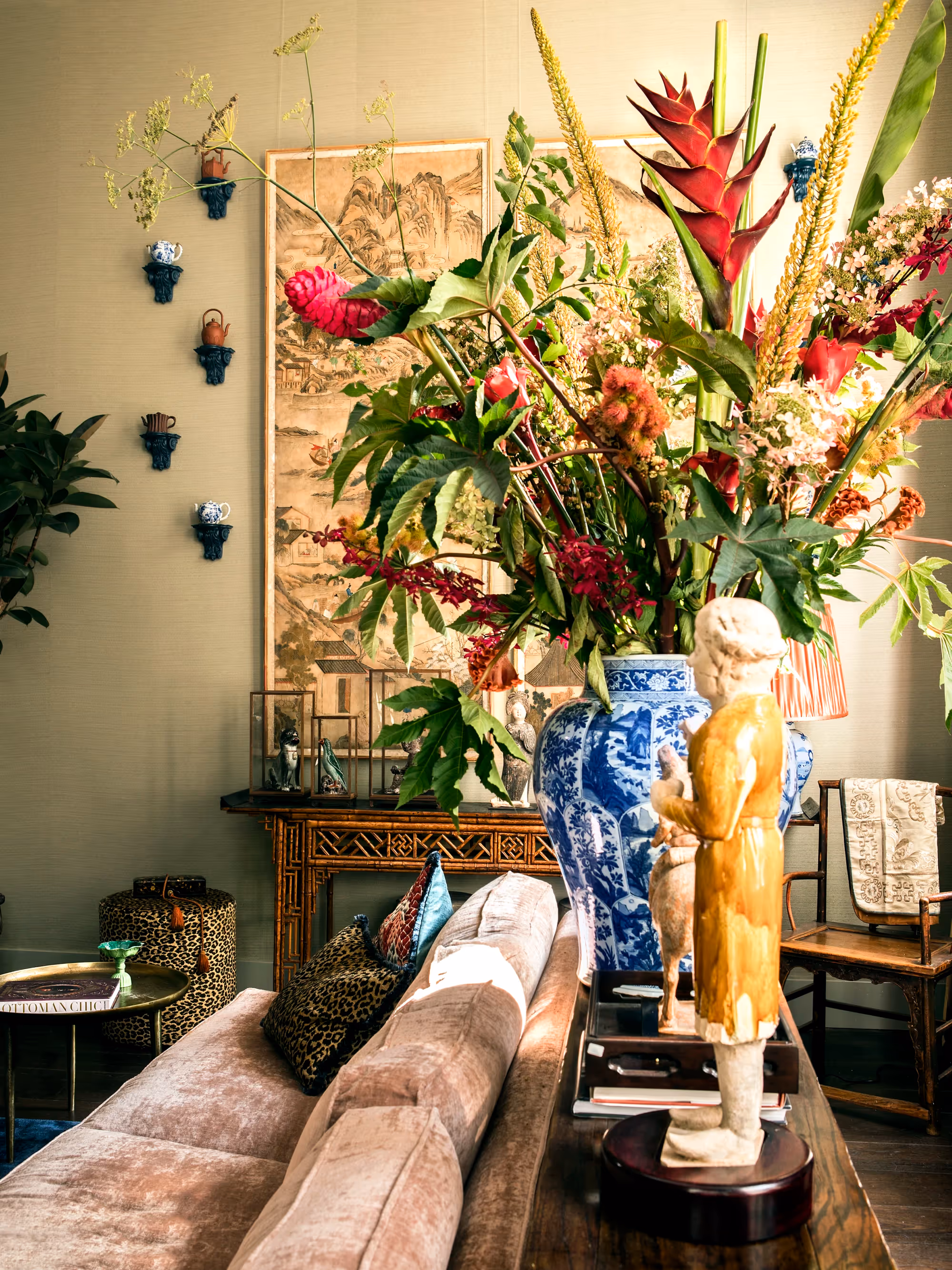 Through the use of materials like terracotta and porcelain, the design pays homage to the craftsmanship of Oriental art, turning the space into a tribute to both the artistry and the personal connection the owners feel toward their collection.